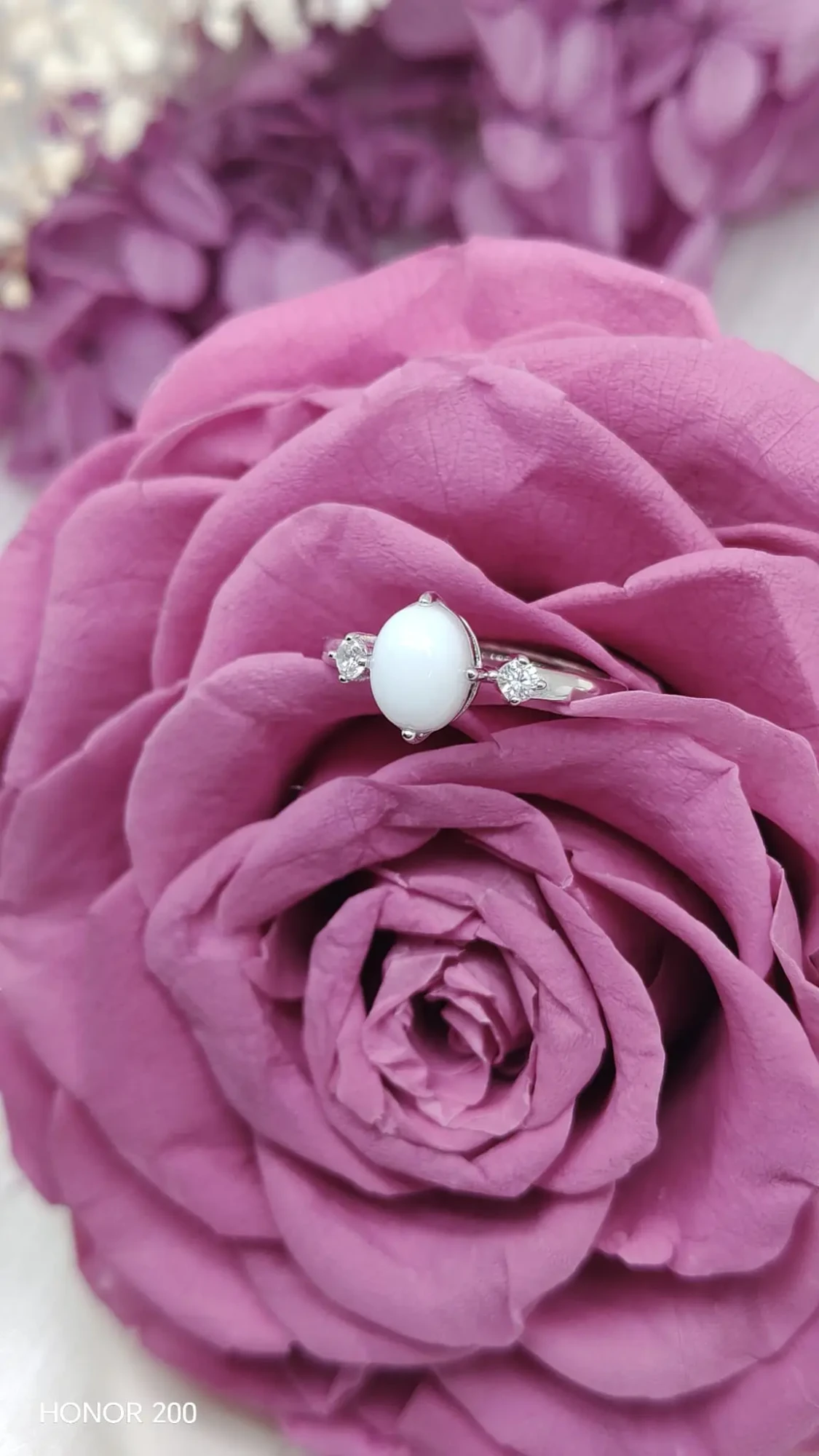 La Bague Octavia est un bijou au lait maternel d’une élégance sobre et raffinée. Sa pierre ovale blanche, fabriquée à partir de votre propre lait, est sertie en argent 925 et encadrée de deux petits strass étincelants.