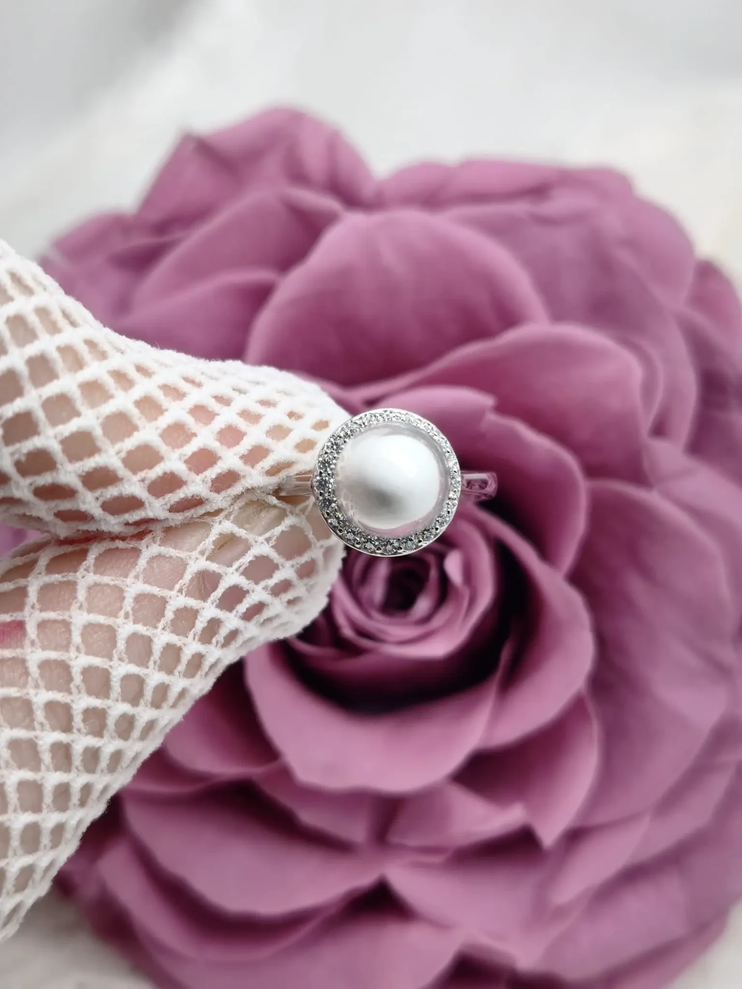 Le corps du bijou est entièrement réalisé en argent 925, une matière classique et résistante pour être portée tous les jours. L’anneau reste fin et lisse, ce qui garantit un port léger et très confortable à votre doigt. Le petit support qui accueille la perle est légèrement surélevé pour bien la maintenir, tout en laissant joliment passer la lumière sous les pierres.
