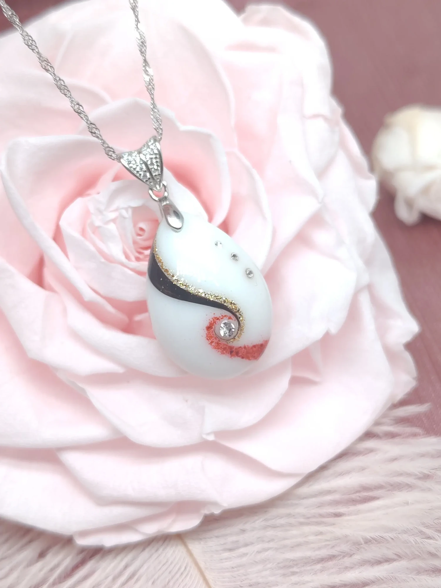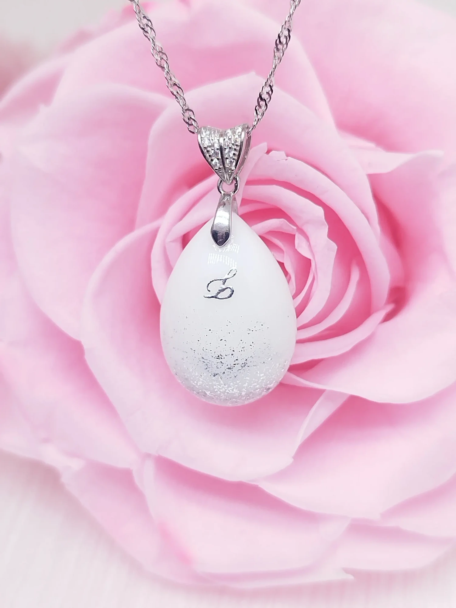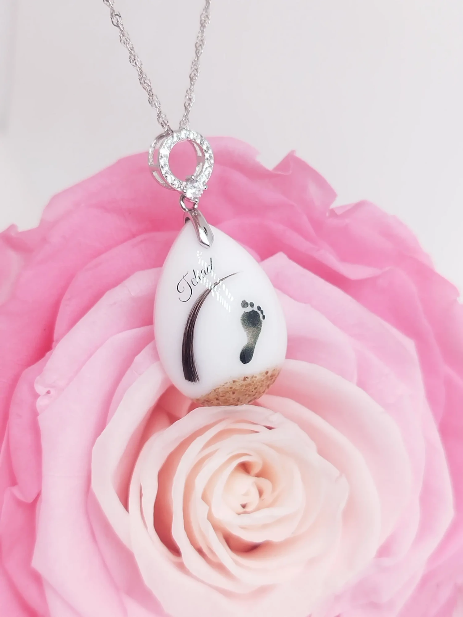Notre collection signature présente une perle en verre contenant la poudre lactée compactée (déshydratation uniquement, sans résine). Le design minimaliste permet d’ajouter une mèche de cheveux ou des pétales de fleurs. Conçue pour un port quotidien avec soin, cette collection incarne l’élégance intemporelle et épurée.
