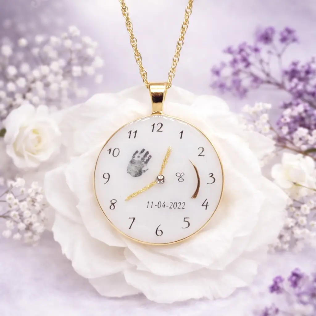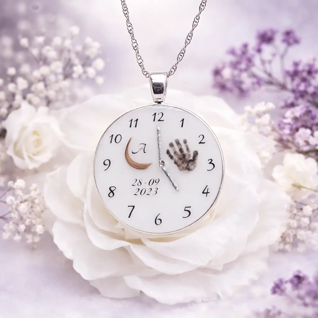 Ce bijou est né d’une idée longtemps caressée : figer l’instant précis où votre enfant est venu au monde. L’heure exacte de sa naissance, gravée dans le temps et dans votre cœur, devient ici un cadran délicat où chaque détail célèbre ce moment où tout a commencé. Un design inédit, pensé pour les mamans qui veulent porter ce « premier souffle » comme le plus précieux des trésors.
