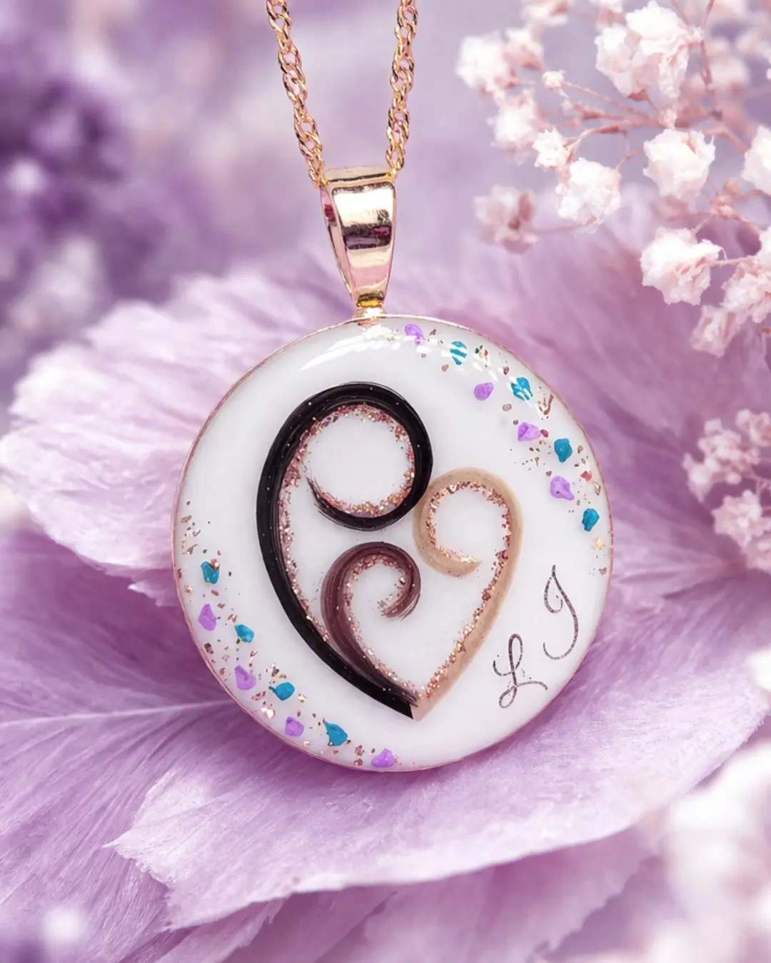 Créés en résine après le processus complet de préservation du lait maternel. Ces bijoux offrent une personnalisation maximale : mèches de cheveux, paillettes, feuilles d’or, cordon ombilical et multiples inclusions. Le rendu est artistique et travaillé, idéal comme bijou souvenir symbolique à porter lors d’occasions spéciales.